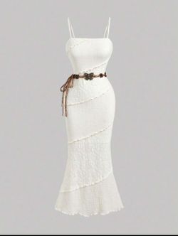 Set Gorgeous Court Peach Asymmetrical Split Lace Panel Dress With Complimentary Vintage Metallic Bow Belt + 1pc Western Cowboy Boho Style Country Belt$45Killeen, TX