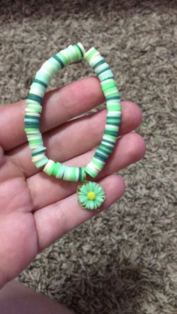 Cute Green Clay Bead Bracelet With A Green Flower Charm $2Bothell, WA