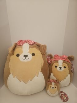 Lot of 3 "Andres the Sheltie" Valentine's Squishmallow - Jumbo / Medium / Small - New with Tags RARE$100Hillside, NJ