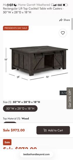 Lift Top Rolling Table Coffee Table Cocktail Table $500Ramona, CA