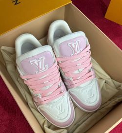 LV Trainer Leather Round Toe Lace Up Low Top Fashion Board Shoes Unisex Rose Pink$235Clarksboro, NJ