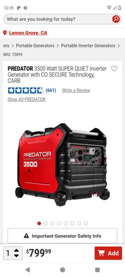 Predator Super Quiet Inverter Generator 3500$300San Diego, CA