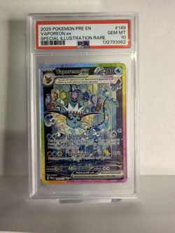 2025 POKEMON PRE EN-PRISMATIC EVOLUTIONS #149 VAPOREON EX PSA 10$1,100Houston, TX
