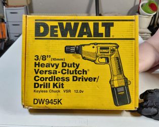 DEWALT 12 VOLT 3/8" HEAVY DUTY VERSA CLUTCH CORDLESS DRIVER / DRILL KIT (KEYLESS CHUCK) DW945K$45Bolingbrook, IL
