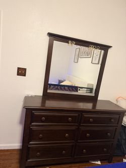 Dark Wood 6 Drawer Dresser With Mirror And Night Stand $220Modesto, CA