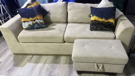 Beige Woven Wool Sofa & Storage Ottoman With Wood Base- DELIVERY AVAILABLE $250Charlotte, NC