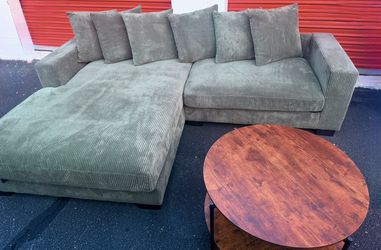 Green Ashley Linden L Shaped Corderoy Sofa Sectional w/Circular Wood Table- DELIVERY AVAILABLE$400Charlotte, NC