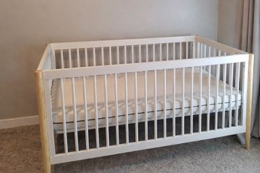 Modern Baby Crib + Toddler Mattress & Bedding Set – Like New$260Halethorpe, MD