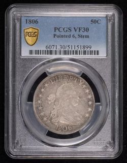 1806 P Half Dollars Draped Bust PCGS VF-30 Pointed 6, Stem$590Paducah, KY