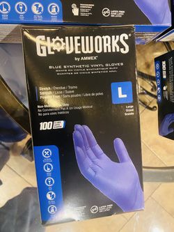 Gloveworks Blue Synthetic Vinyl Gloves by AMMEX, size Large. The box contains 100 Gloves$5Columbus, OH