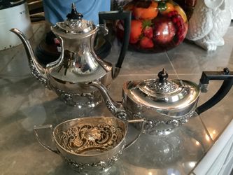 SHEFFIELD SILVER PLATE COFFEE/TEA & SUGAR SET (Cameo Pattern)$160Indian Wells, CA