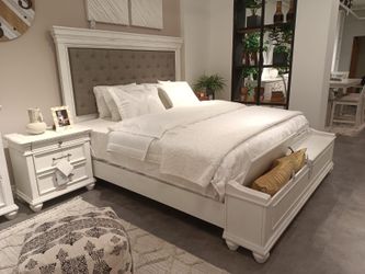 Kanwyn Whitewash Cal King Upholstered Panel Bed, Dresser, Mirror And Chest$2,279San Jose, CA