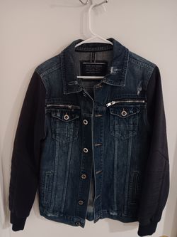 Zara man distressed denim jacket button-flap chest pockets/w unique zippered detailing above chest pockets$25Los Angeles, CA