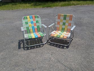 Vintage Set Of Two Aluminum & Basket Woven Folding Low Chair Lawn Beach $50Menands, NY