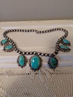 Navajo Pillow Silver Beaded Turquoise Necklace$1,400Mesa, AZ