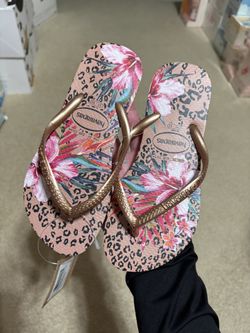 Size 2Y - Havaianas Pink Floral Leopard Crocus Rose Flip Flops with Gold Straps$10Tulare, CA
