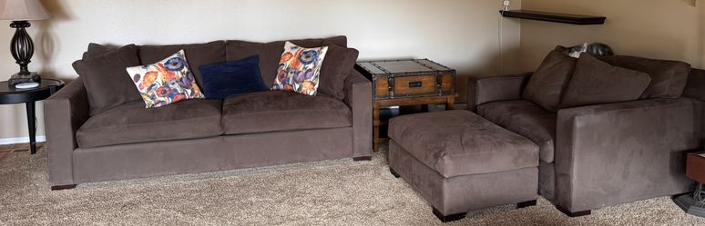 Crate & Barrel Espresso Microsuede Sofa Armchair Ottoman Set, Price for all 3 pieces.$2,100Portland, OR