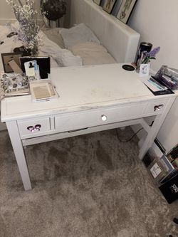 White wooden office desk/vanity stand with drawers and bottom shelf$120Franklin, TN