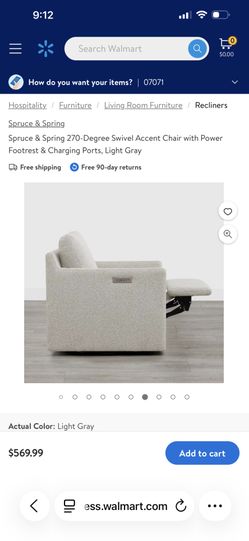 Spruce & Spring 270-Degree Swivel Accent Chair with Power Footrest & Charging Ports, Light Gray$180Kearny, NJ