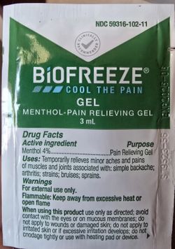 BioFreeze Menthol Pain Relieving Gel.$5San Diego, CA