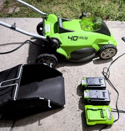 Lawn mower with two batteries (1 extra battery), charger and bag.... excellent...$260Bradenton, FL