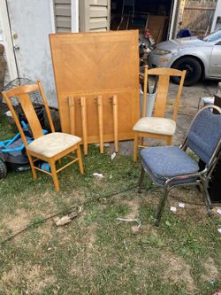 Kitchen Table With 2 Matching Chairs And 2 Metal Chairs With Blue Cushions $50$50Youngstown, OH