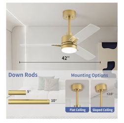 Modern Gold Ceiling Fan 42" with Clear Blades & Light (Remote)$60Naperville, IL