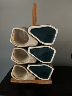 6 RODOLFO PADILLA Stoneware Mugs Blue Beige Drip Glaze & Stand MCM Southwest$50Tucson, AZ