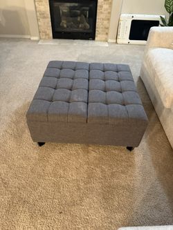 SIMPLIHOME Harrison 36 inch Wide Transitional Square Coffee Table Storage Ottoman in Slate Grey Linen Look Fabric, Assembled, For the Living Room and $100Lynnwood, WA