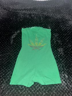 Green Rhinestone Romper – Rasta Cannabis Leaf & SD Logo (Size Small)$25Chula Vista, CA