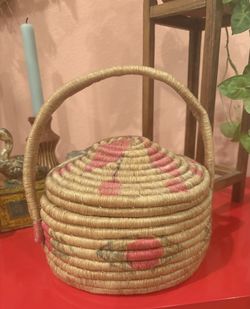 Vintage Native American Southwestern Coiled Wicker Basket W/ Lid & Handle $30Portland, OR