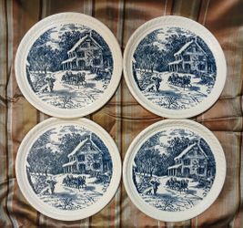 Royal (USA) Currier and Ives Blue Plate 7.5" Winter Village Scene
