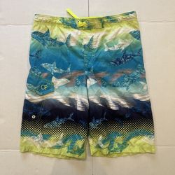 OP Swim Trunks Boys XL 14/16 Blue Green Shark Print Board Shorts Mesh Liner$5Sunnyvale, CA