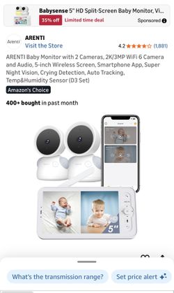New | ARENTI Baby Monitor with 2 Cameras, 2K/3MP WiFi 6 Camera and Audio, 5-inch Wireless Screen$75Kansas City, KS