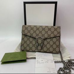 GUCI Dionysus Tiger Head Clasp Monogram Canvas WOC Wallet on Chain - Ebony, Beige Lining, Crossbody/Shoulder Bag with Full Set$450Los Angeles, CA