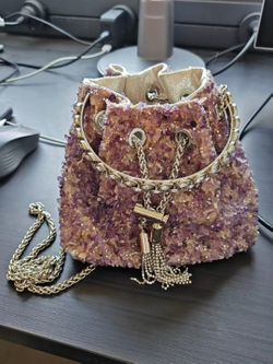✨Nearly New Purple Crystal Encrusted Bucket Bag Gemstone Cutting Surface + Gold Chain Tassel Dating Shopping Divine$80New York, NY