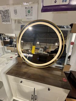 31.5 inch Gold Bathroom Round LED Mirror with Lights Gold Frame Round Lighted Mirror for Bathroom Wall Round Vanity Lighted Mirrors 3 Color Dimmable $150Norcross, GA