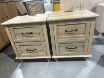 End Table Nightstand with Charging Station, Farmhouse Side Table for Living Room with 2 Drawers, Natural Wood Night Stand Bedside Table for Bedroom, O$168Norcross, GA