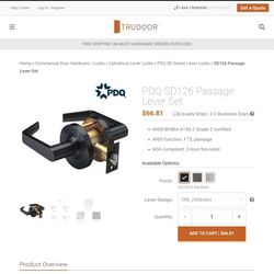 Brand New PDQ SD1260RL-622 Passage Lever Lock - Flat Black (Grade 2)$49Yonkers, NY