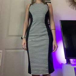 Business Optical Illusion Fitting Dress, Black And White Stripes$15Fresno, CA