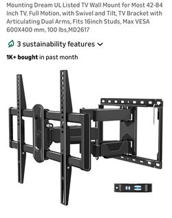 Mounting Dream UL Listed TV Wall Mount for Most 42-84 Inch TV, Full Motion, with Swivel and Tilt, TV Bracket with Articulating Dual Arms, $55Lakewood, CA