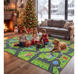 Merelax 5x8 Kids Car Area Rug, Green Grey Area Road Rugs for Living Room Playroom Classroom Bedroom, Non Slip Kids Play mat, Washable Rug, $60Lakewood, CA