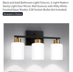 Black and Gold Bathroom Light Fixtures, 3-Light Modern Vanity Light Over Mirror, Wall Sconces with Milky White Frosted Glass Shades, E26 Socket $45Lakewood, CA