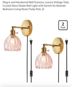 Plug in and Hardwired Wall Sconces, Luxury Vintage Tulip Crystal Glass Shade Wall Light with Switch for Bedside Bedroom Living Room (Tulip-Pink, 2)$50Lakewood, CA
