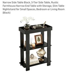 Narrow Side Table Black, 3-Tier Side Table, Rustic Farmhouse Narrow End Table with Storage, Slim Table Nightstand for Small Spaces, $40Lakewood, CA