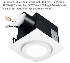 Bathroom Exhaust Fan with Light 88CFM 1.0 Sone, Quiet 28W Bath Shower Fan 3CCT Color LED Light Adjustable 8 x 8 inch Extractor Vent for Bathroom White$60Lakewood, CA