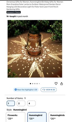 Christmas Gifts for Women, Hummingbird Birthday Gifts for Women Mom Grandma Solar Lanterns Outdoor Waterproof Garden Decor Hanging LED Decorative Ligh$15El Paso, TX