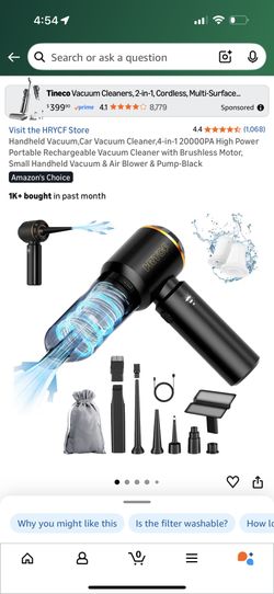 Handheld Vacuum,Car Vacuum Cleaner,4-in-1 20000PA High Power Portable Rechargeable Vacuum Cleaner with Brushless Motor, Small Handheld Vacuum & Air Bl$25El Paso, TX