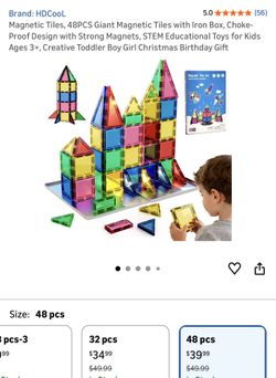 Magnetic Tiles, 48PCS Giant Magnetic Tiles with Iron Box, Choke-Proof Design with Strong Magnets, STEM Educational Toys for Kids Ages 3+, Creative Tod$20El Paso, TX