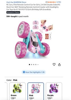 RC Cars, Pink Remote Control Car for Girls, 2.4 GHZ Double Sided RC Stunt Car 360° Rotating Remote Control Crawler with Headlights Car Toys for 6 7 8 $15El Paso, TX